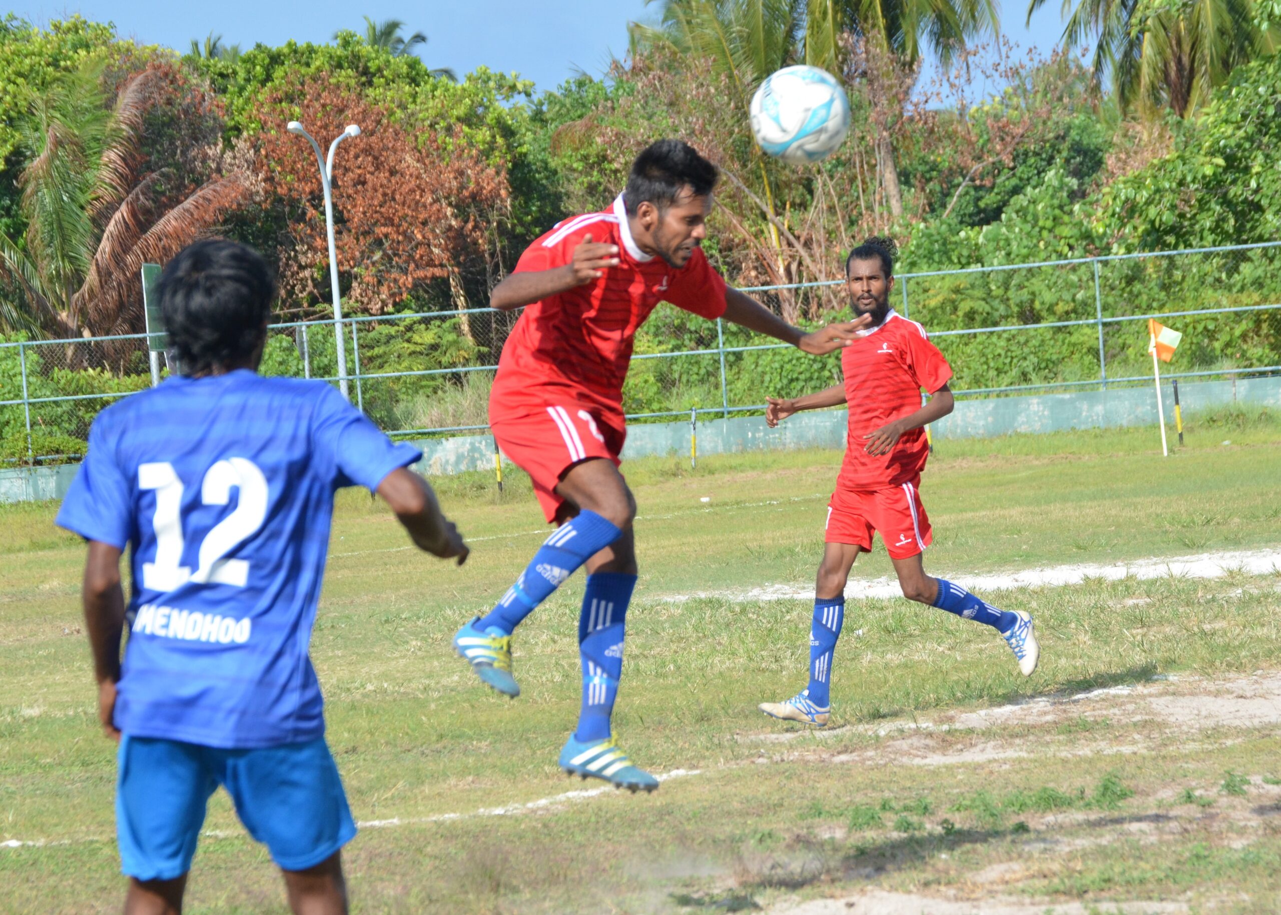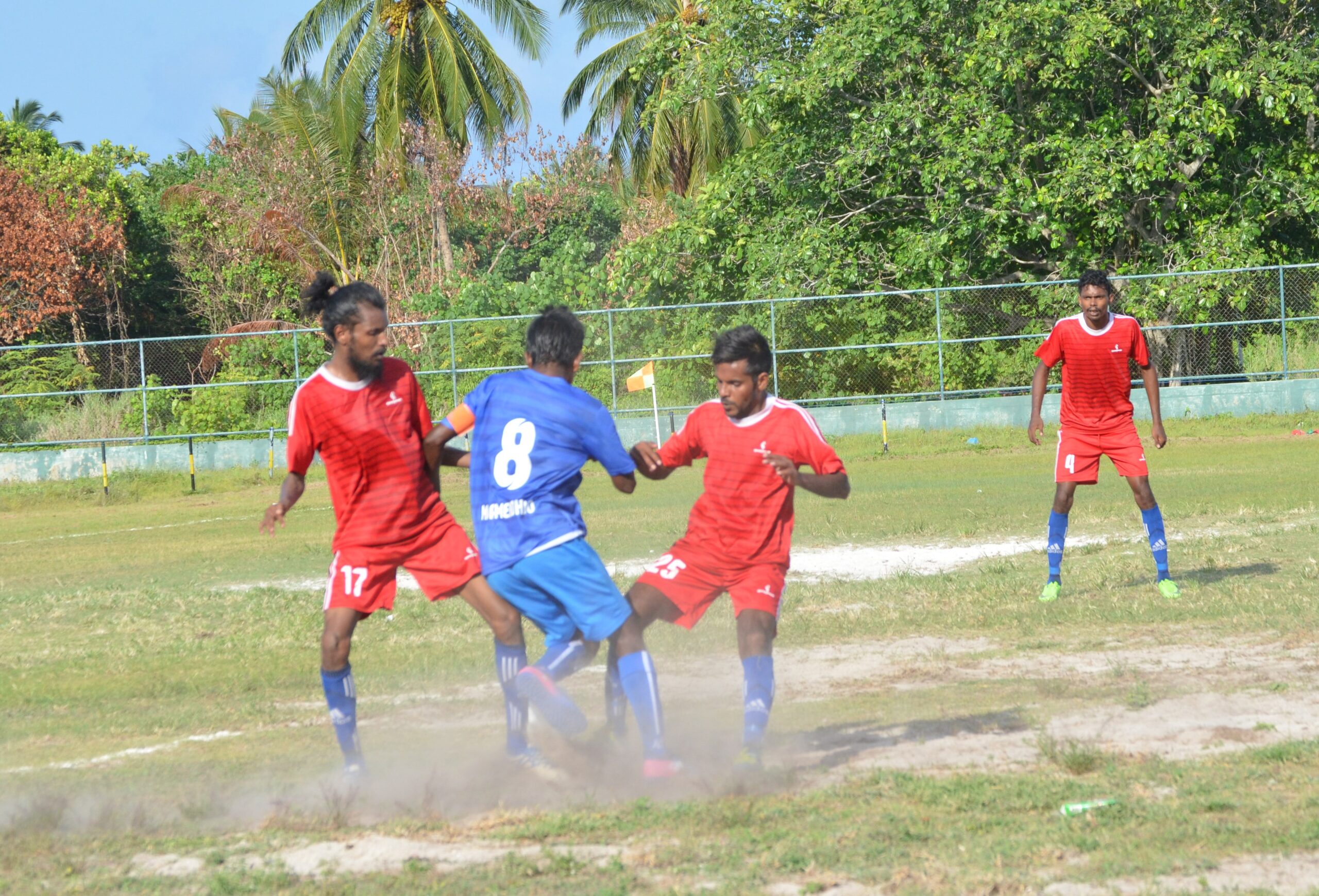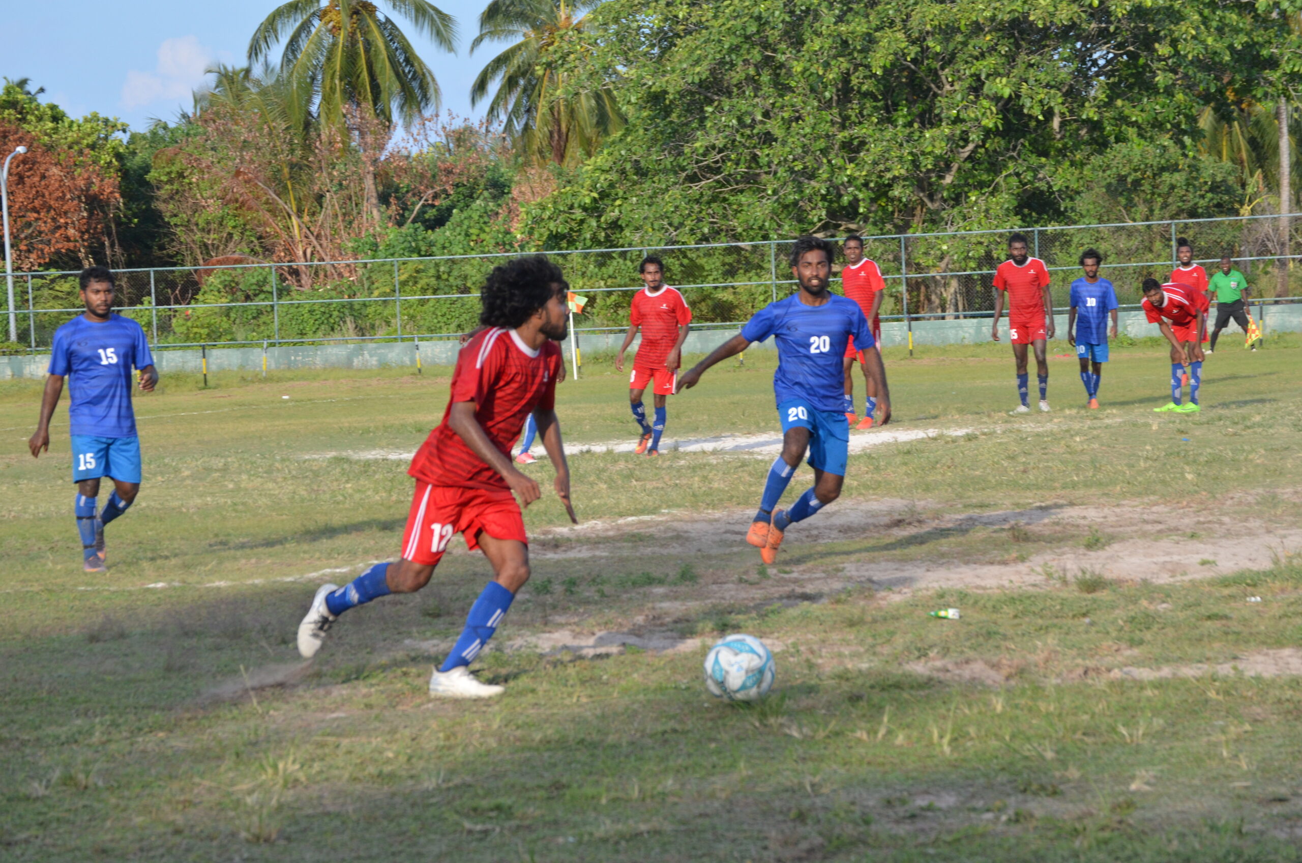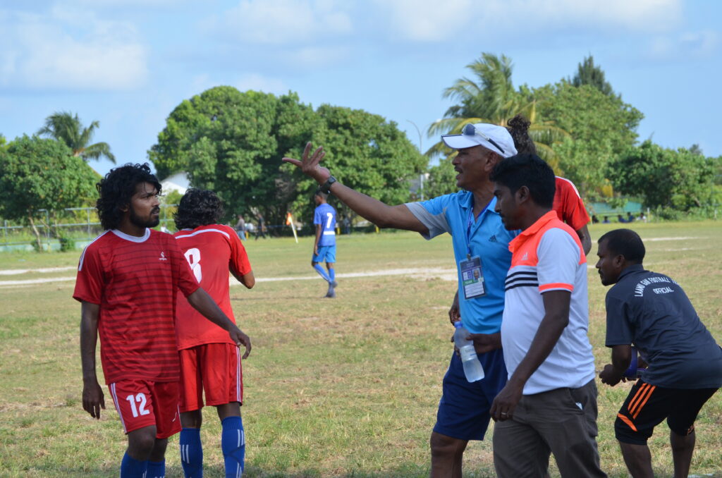 ލ.ގަމު ޓީމުގެ ކުޅުންތެރިޔާ އިދިކޮޅު ޓީމުގެ ކުޅޫންތެރިޔާ ޖެހި ބޯޅަ ދިފާއު ކުރަނީ