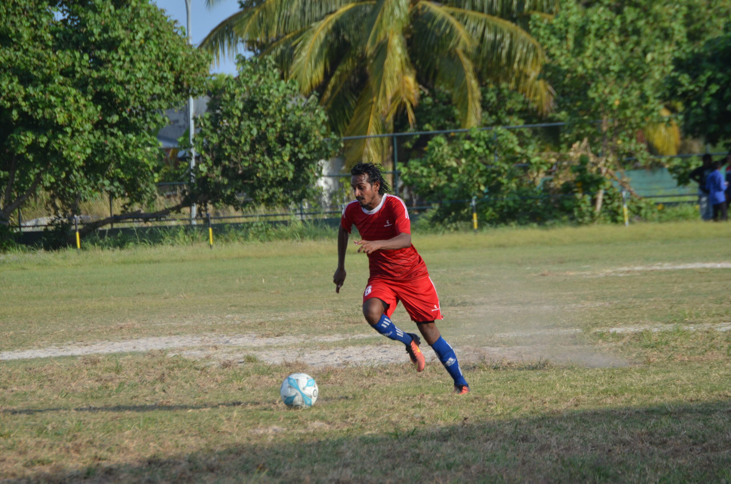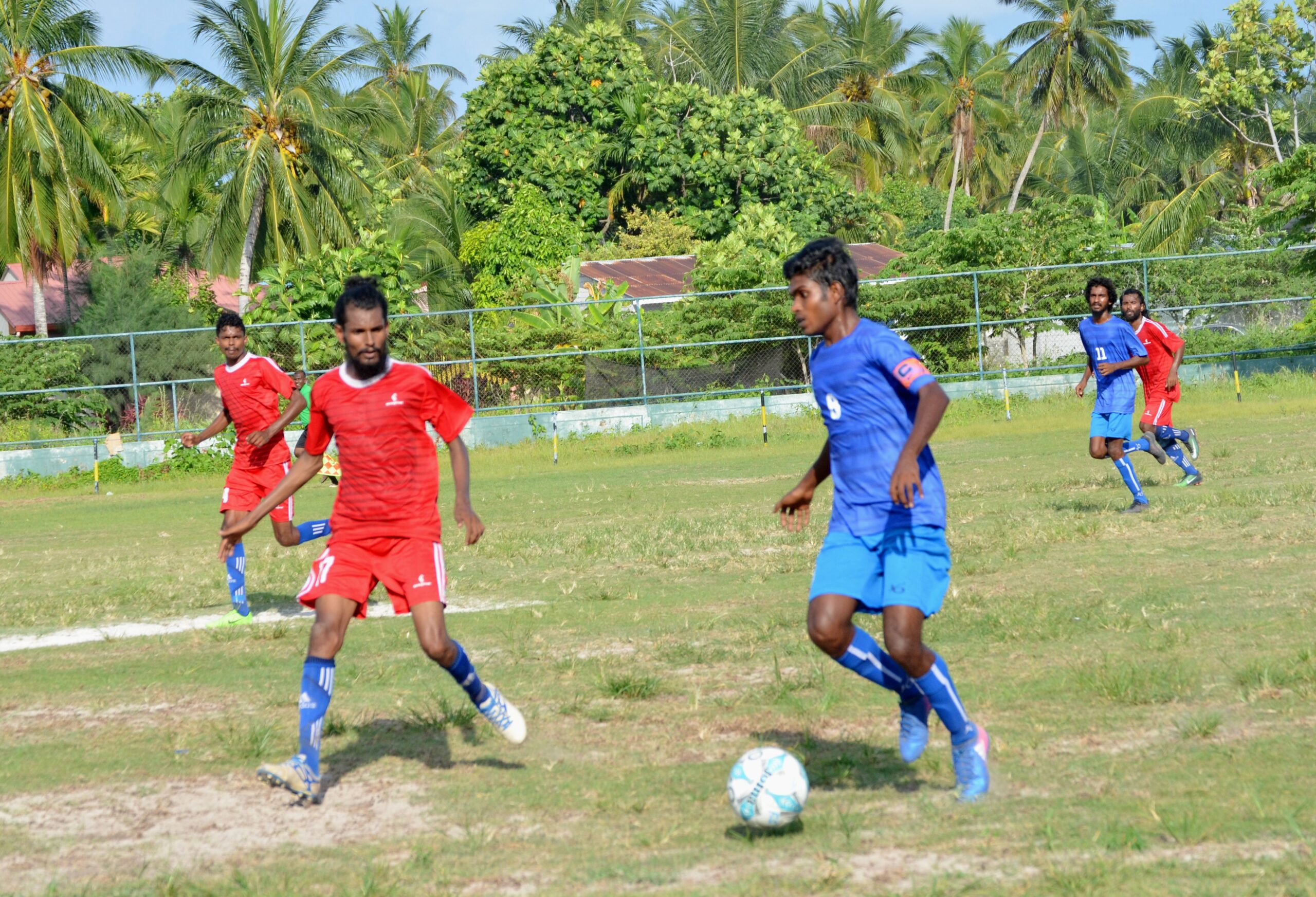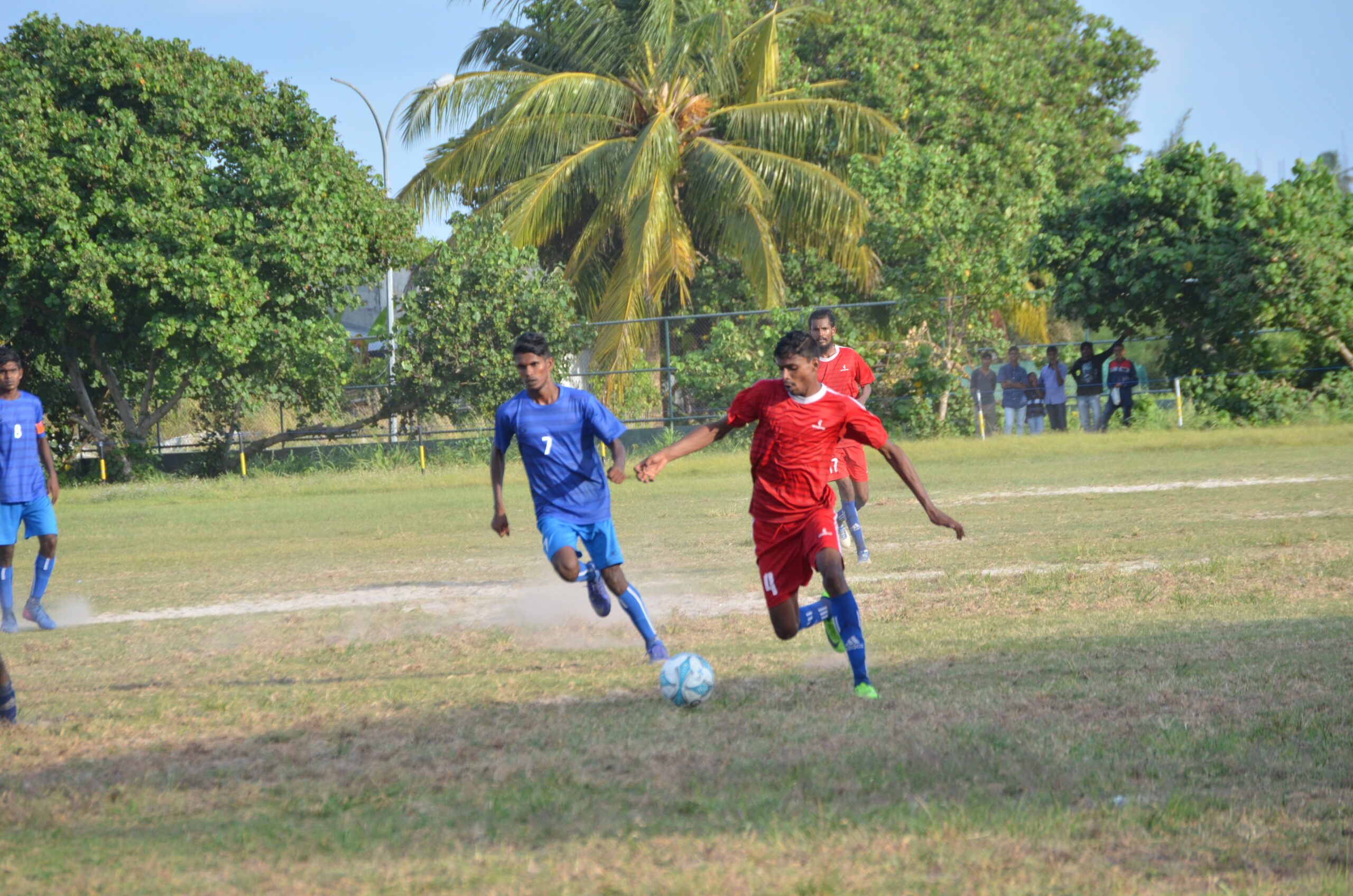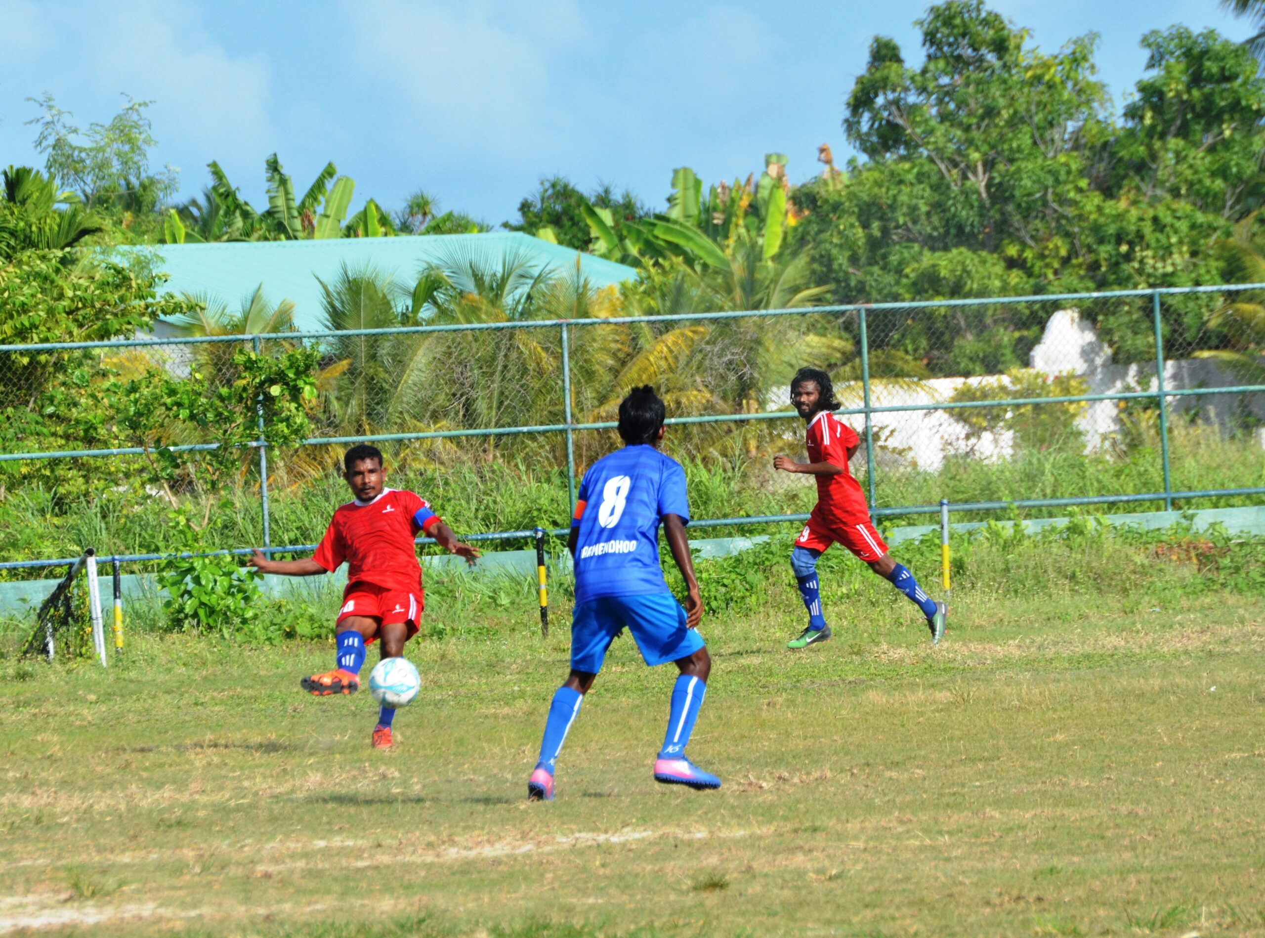 ލ.ގަމު ޓީމުގެ ކުޅުންތެރިޔާ އިދިކޮޅު ޓީމުގެ ކުޅޫންތެރިޔާ ޖެހި ބޯޅަ ދިފާއު ކުރަނީ
