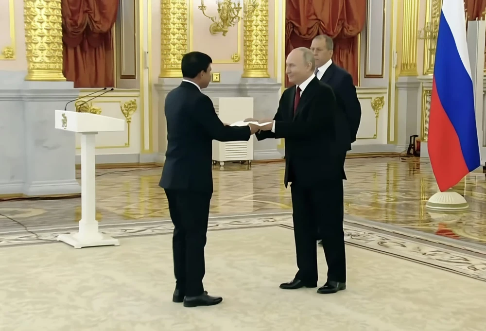 މޮސްކޯގެ ގްރޭންޑް ކްރެމްލިން ޕެލެސްގައި ބޭއްވި ހާއްސަ ރަސްމިއްޔާތެއްގައި ފަތްކޮޅު އެރުއްވުމަށްފަހު، ސަފީރު ޢަބްދުއްރަޙީމް ޢަބްދުއްލަޠީފް ވަނީ ރައީސުލްޖުމްހޫރިއްޔާ ޑރ. މުޢިއްޒުގެ ފަރާތްޕުޅުން ރަޝިއާގެ ރައީސަށާއި އެގައުމުގެ ރައްޔިތުންނަށް ހެޔޮއެދުންތަކާއި ތަހުނިޔާ އަރިސްކުރައްވާފައެވެ.