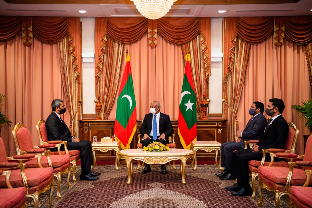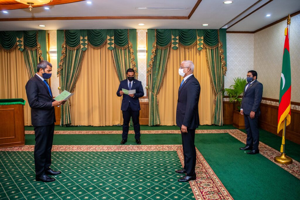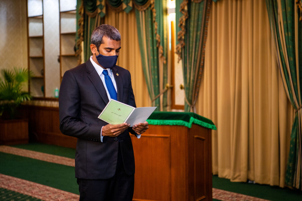 ރައީސުލްޖުމްހޫރިއްޔާ، އޮޑިޓަރ ޖެނެރަން ހުޞައިން ނިޔާޒްއަށް ފަތްކޮޅު ދެއްވުމުގެ ރަސްމިއްޔާތުގެ ތެރެއިން- ފޮޓޯ/ރައީސް އޮފީސް