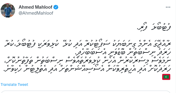 މަޙްލޫފް ކުރެއްވި ޓްވީޓެއްގައި ވިދާޅުވީ މިއީ ފުޓްބޯޅަ ފޯރިކަމަށެވެ. އަދި ރާއްޖޭގަ އެންމެ ގިނަބަޔަކު ސަޕޯޓުކުރާ އަދި ކުޅޭ ކުޅިވަރަކީ ފުޓުބޯޅަކަމަށާ، ކުރާ ހަރަދު ނިސްބަތުން ބޮޑުވަނީ އެސަބަބާހެދިކަމަށެވެ.