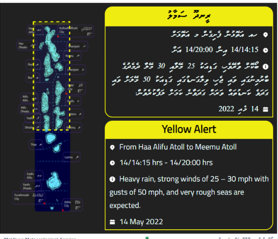 ރާއްޖޭގެ މޫސުމް ގޯސްވުމާއި ގުޅިގެން މިއަދުވެސް ބޯކޮށްވާރޭވެހި ވައިގަދަވާނެކަމަށް ލަފާކޮށް މުސުމާއިބެހޭ އިދާރާއިން ވަނީ ހއ. އިން ފެށިގެން މ އަތޮޅާއިހަމަޔަށް ރީނދޫ ސަމާލު ނެރެފައެވެ.