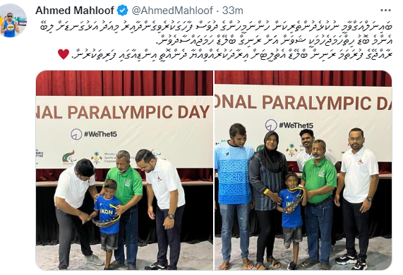 ބައިނަލް އަޤްވާމީ ޚާއްސައެހީއަށް ބޭނުންވާ މީހުންގެ ދުވަހަުގެ މުނާސަބަތާއި ގުޅުވާލައްވާ ޔޫތު މިނިސްޓަރ އަޙްމަދު މަޙްލޫފް ކުރެއްވި ޓުވީޓެއްގައި ބުނެފައިވަނީ މިއަދު އެންމެެ އުފާވަނީ ޝަވަންއަށް ރަނިންގް ބްލޭޑް އެއް ހަމަޖައްސައި ދެވުމުން ކަމަށެވެ. އަދި ރާއްޖޭގެ އެންމެ ފުރަތަމަ ރަނިންގް ބްލޭޑް އެތުލީޓަކަށް ޝަވަން ހެދުމަކީ އުންމީދެއްކަމަށެވެ.