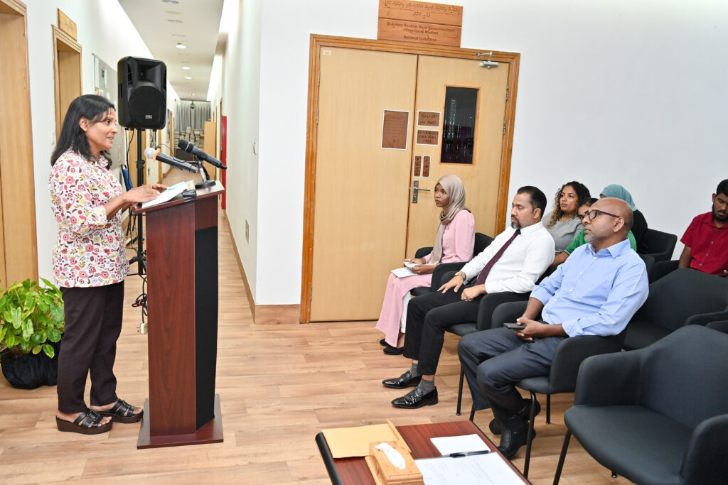 ޤައުމީ ކުތުބުޚާނާގައި ބޭއްވި މި ރަސްމިއްޔާތުގައި އެކަމަނާ ދެއްކެވި ވާހަކަފުޅުގައި މިފޮތުގައި ހިމަނާފައިވާ މަޢުލޫމާތު ޢަމަލީ ގޮތުން ބޭނުން ކުރެވިދާނެ ގޮތްތަކުގެ މައްޗަށް އަލިއަޅުއްވާލެއްވިއެވެ.
